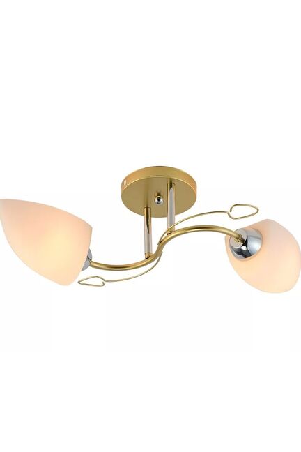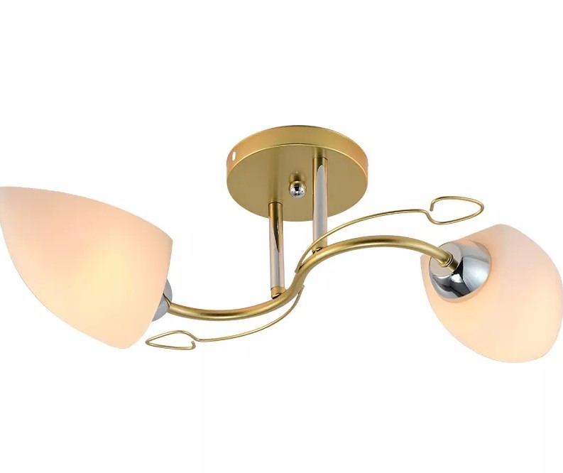 Размеры: (Д*Ш*В) 500*200*170 мм Современная люстра на 2 лампы E14, мощность 2×60 Вт, стильное золотое оформление, универсальный дизайн для любых помещений, легкий монтаж.