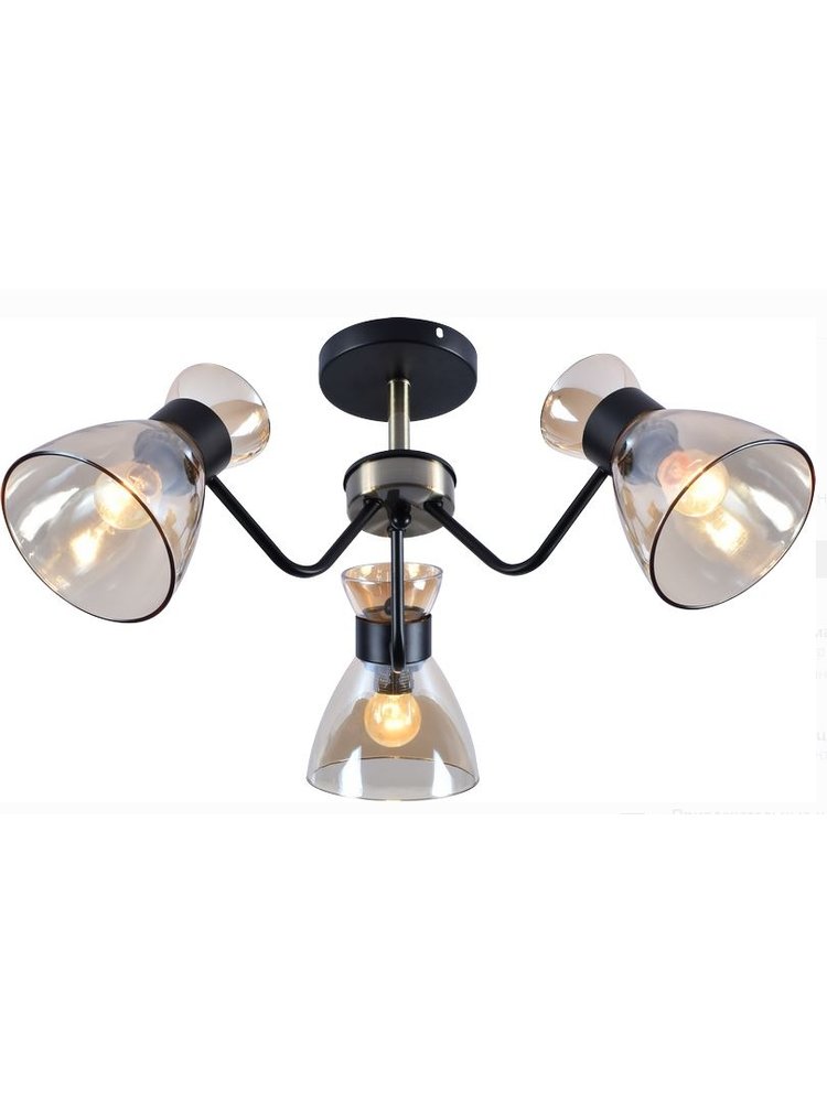 Элегантное решение для современного интерьера — изысканная люстра на три лампы, сочетающая стильный черный цвет с акцентами под бронзу. Она отлично подходит для гостиной, спальни, кухни, холла или офиса, создавая равномерное освещение и уютную атмосферу в помещении площадью до 18 м².