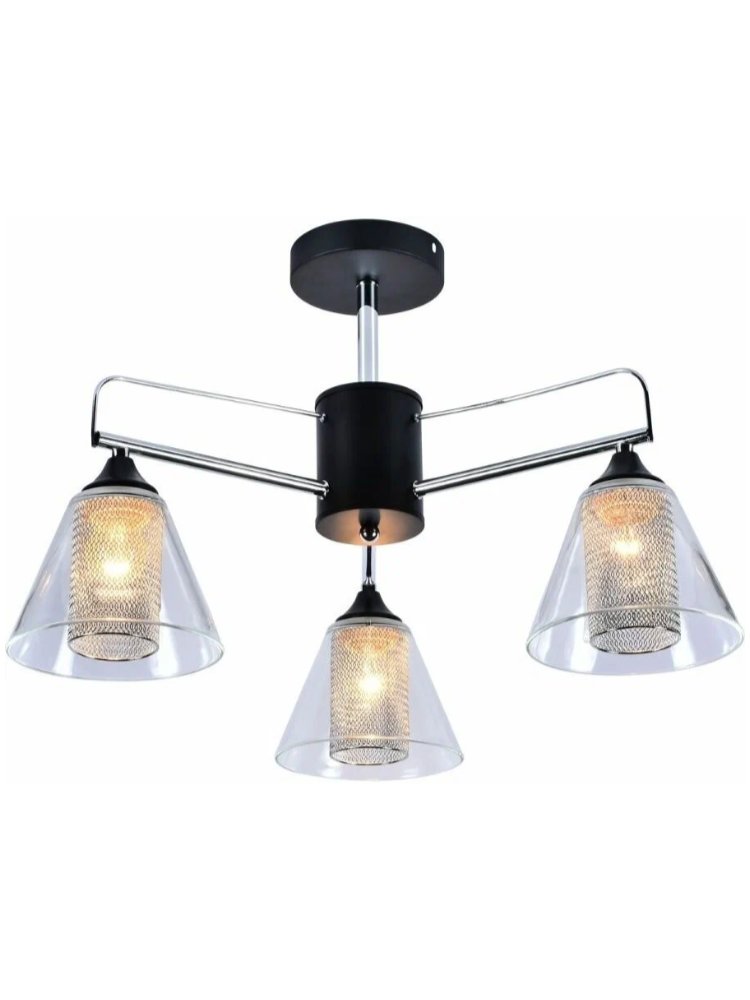 - Цоколь: E27, 3 лампы по 60 Вт — обеспечивает яркое равномерное освещение;