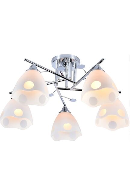 Стильная люстра на 5 ламп E27 до 60 Вт, хромированный корпус, подходит для освещения комнат до 20 м², легко устанавливается и совместима с LED-лампами.