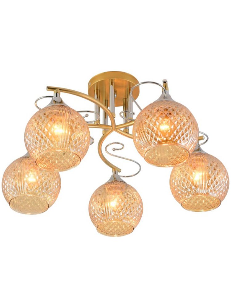 Элегантная 5-ламповая люстра в современном стиле с изысканным золотым покрытием идеально подойдет для освещения гостиных, спален, холлов и общественных интерьеров. Мягкий рассеянный свет создаст уютную атмосферу в вашем доме.