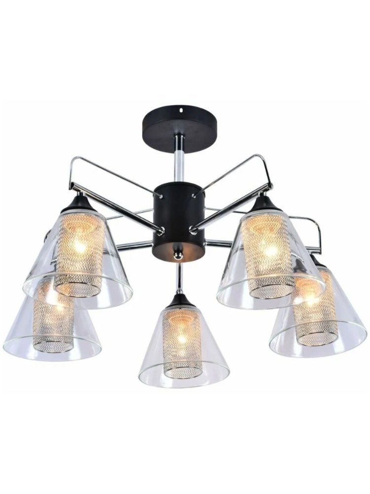 Современное решение для любых интерьеров – стильная потолочная люстра на 5 ламп черного цвета с элементами хрома создаст яркое и равномерное освещение в гостиной, спальне, кухне или офисе. Легко впишется как в классический, так и в современный дизайн.