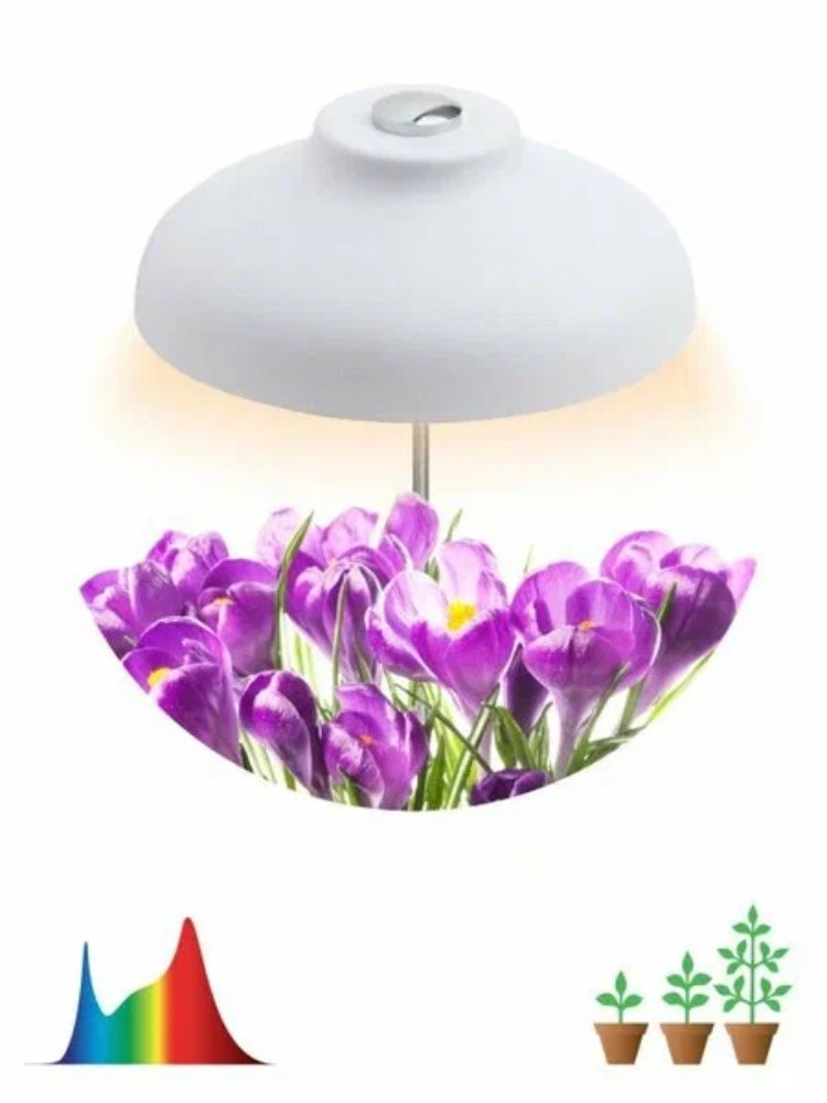В отличие от обычных ламп, такой светильник ускоряет прорастание семян, обеспечивает равномерное освещение и увеличивает урожайность. Диоды полного спектра подходят для любых видов растений — от зелени до рассады овощей и цветов.