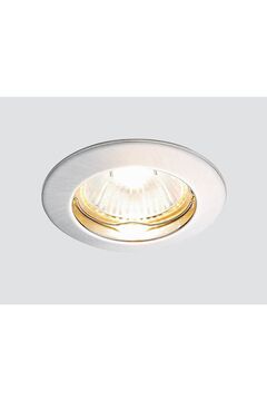 Врезной светильник из металла в цвете "сатиновое серебро", для ламп GU5.3, диаметр 68 мм. Стильное решение для подвесных и гипсокартонных потолков.
