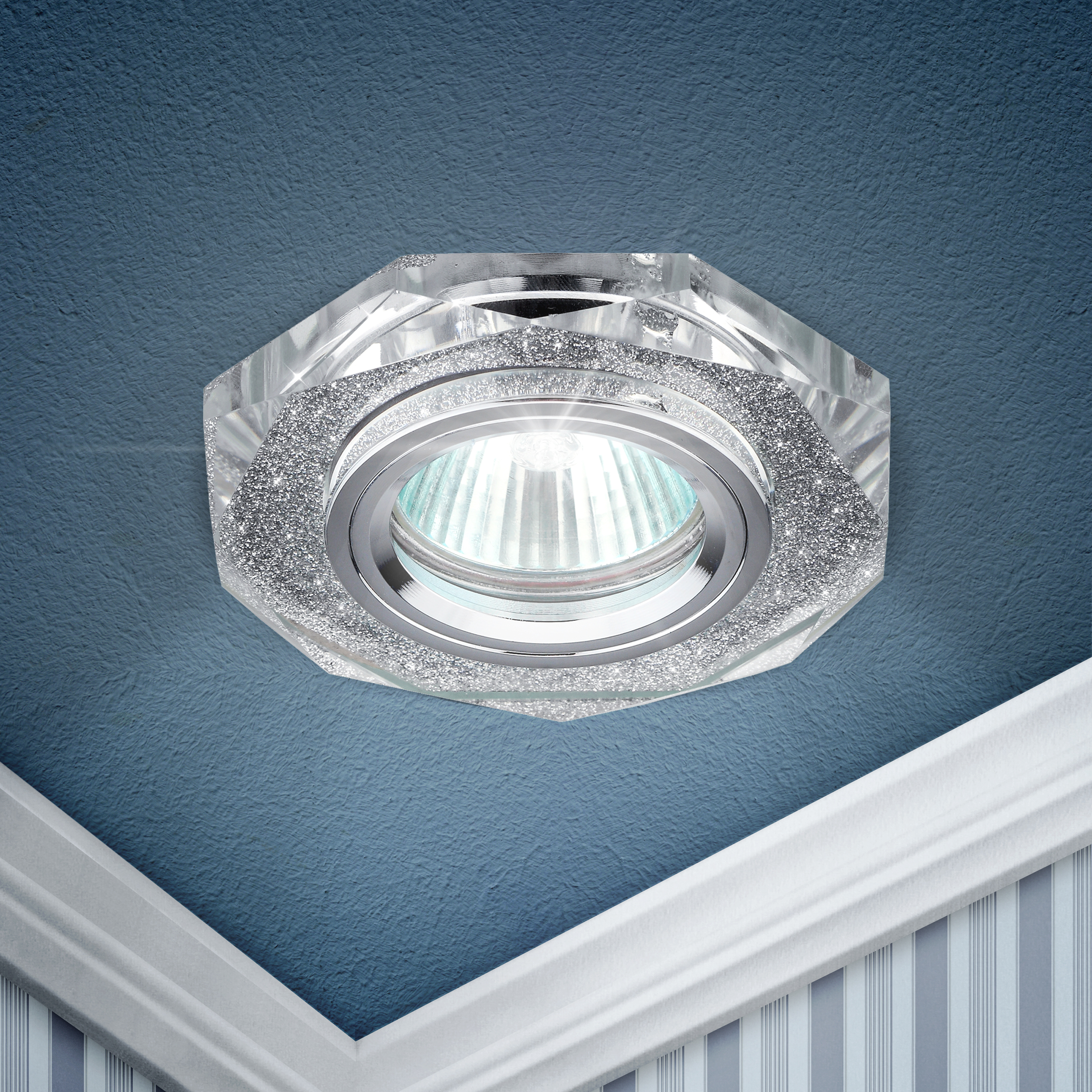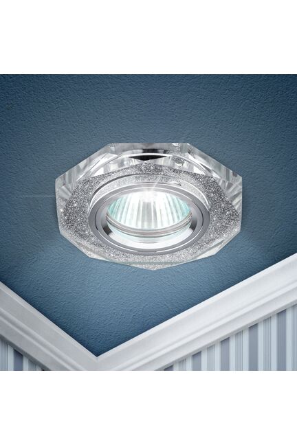 Многогранный стеклянный светильник GU5.3 c зеркальным покрытием, 50 Вт, диаметр 70 мм, для точечного монтажа в потолок, украшает любой интерьер.