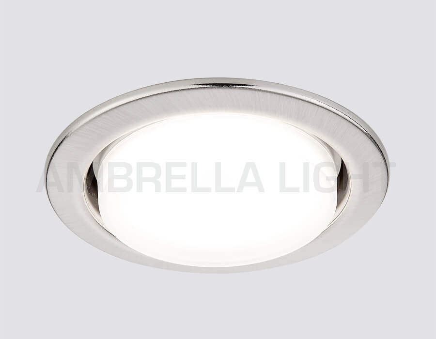Компактный светильник GX53 сатин серебро: стильный корпус, лёгкий монтаж, универсален для жилых и коммерческих помещений, устойчив к коррозии.