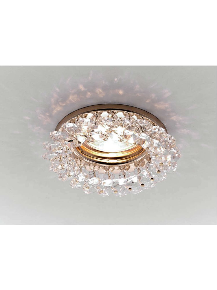 Точечный светильник с покрытием золото и прозрачными элементами, для MR16 ламп. Элегантный акцент, простота установки, универсальное применение.