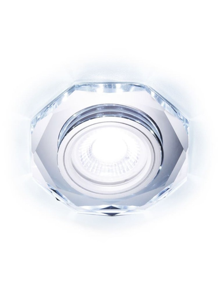 Компактный потолочный светильник с современным дизайном, выполненный в хромированном корпусе с прозрачными декоративными элементами, оснащён универсальным цоколем MR16 для ламп и дополнительным энергоэффективным LED модулем 3W с холодным белым светом. Светильник идеально подходит для установки в подвесные потолки, легко монтируется и отличается долговечностью. Совместим с галогенными и светодиодными лампами стандарта MR16, работает от стандартной сети 220В.