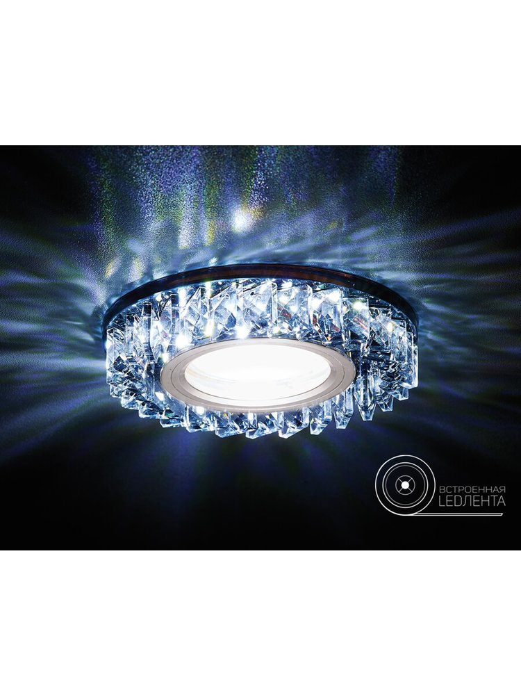 Встраиваемый светильник с тонированным хрусталем, комбинирует LED подсветку и сменную лампу, подходит для жилища и офиса, экономит электроэнергию.