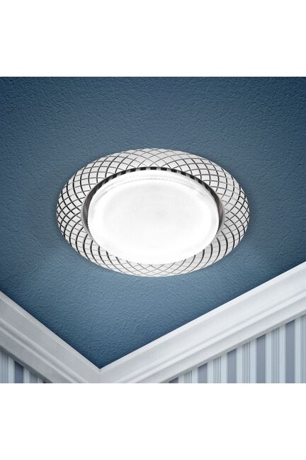 Максимальная мощность лампы – 15 Вт. Корпус встраиваемого светильника изготовлен из металла, что делает его особенно удобным в использовании. Диаметр отверстия, требуемого для установки светильника составляет 90 мм, а диаметр самого светильника – 110 мм. Встраиваемый мягкий свет, белый алюминиевый корпус, диаметр 75 мм, под GX53, универсален для дома и офиса, лёгкая и быстрая установка.