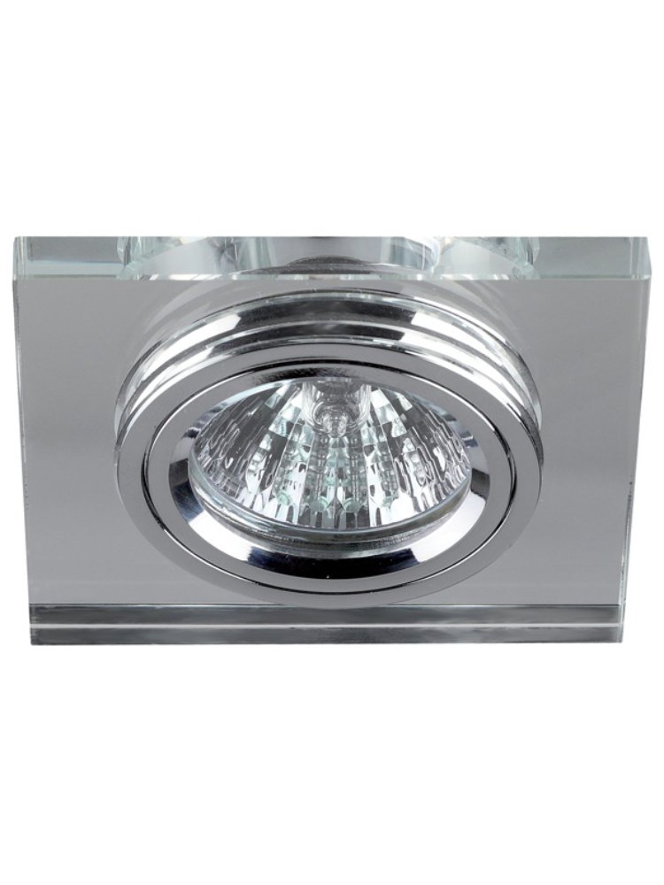 Максимальная мощность лампы – 50 Вт. Корпус встраиваемого светильника изготовлен из алюминия. Диаметр отверстия, требуемого для установки светильника составляет 65 мм, а размер самого светильника – 90 мм. Встраиваемый светильник стекло/хром, 50 Вт MR16, под 12V/220V, стильное оформление, легко монтируется, подходит для любых помещений.