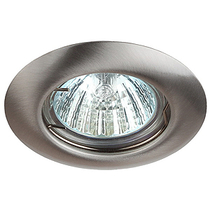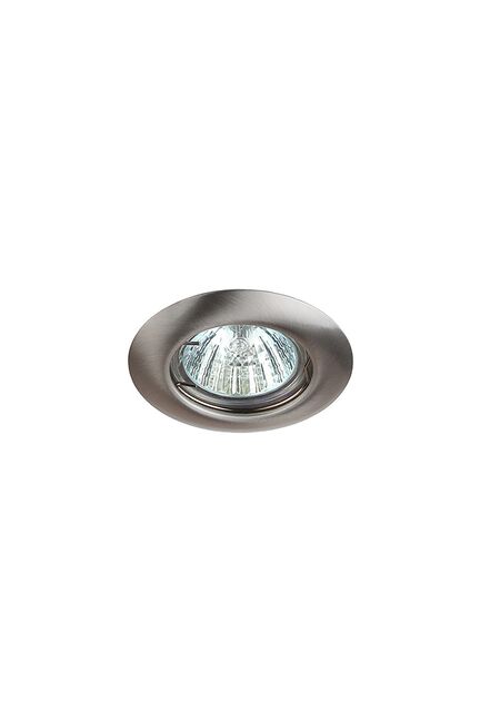 Максимальная мощность лампы составляет 50 Вт. Корпус встраиваемого светильника изготовлен из стали, что делает его особенно удобным и надежным в использовании. Диаметр отверстия, требуемого для установки светильника составляет 60 миллиметров, а диаметр самого светильника – 80 миллиметров. Врезной корпус из сатинированного никеля GU5.3, установка в потолок, максимальная мощность 50 Вт, для ламп 12В, универсальное применение.