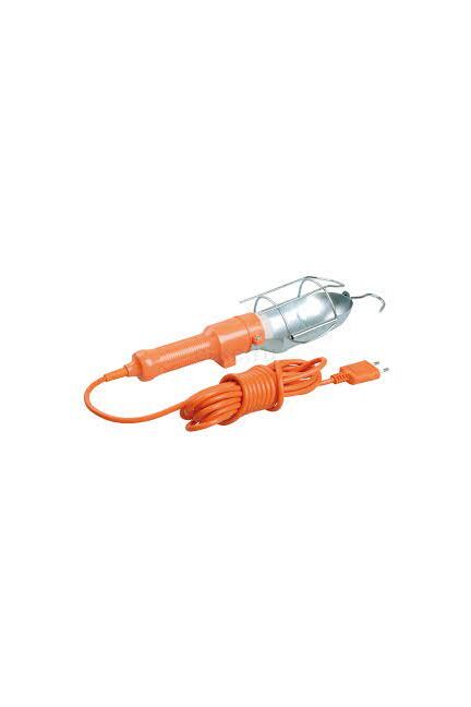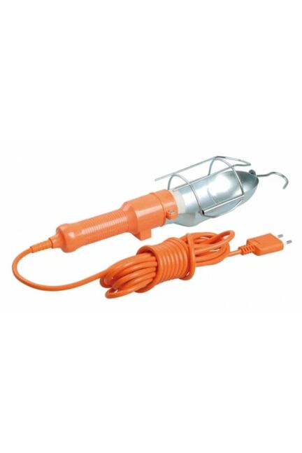 Переносной светильник с выключателем, плоская вилка, длина шнура 10 м, прочный корпус, идеально для временного освещения работ.