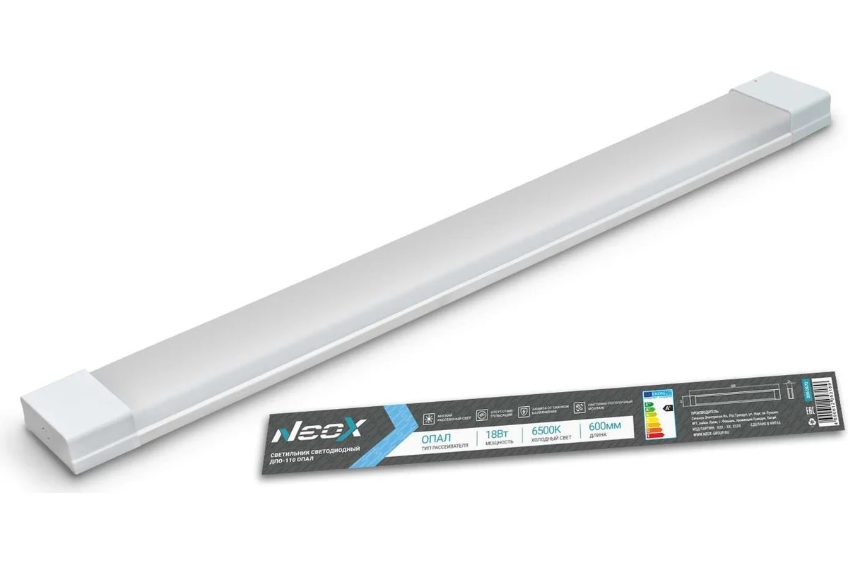 18 Вт, 1800 Лм, холодный свет 6500К, защита IP40, длина 600 мм, долгий срок службы, подходит для офисов, магазинов, учебных и жилых помещений.