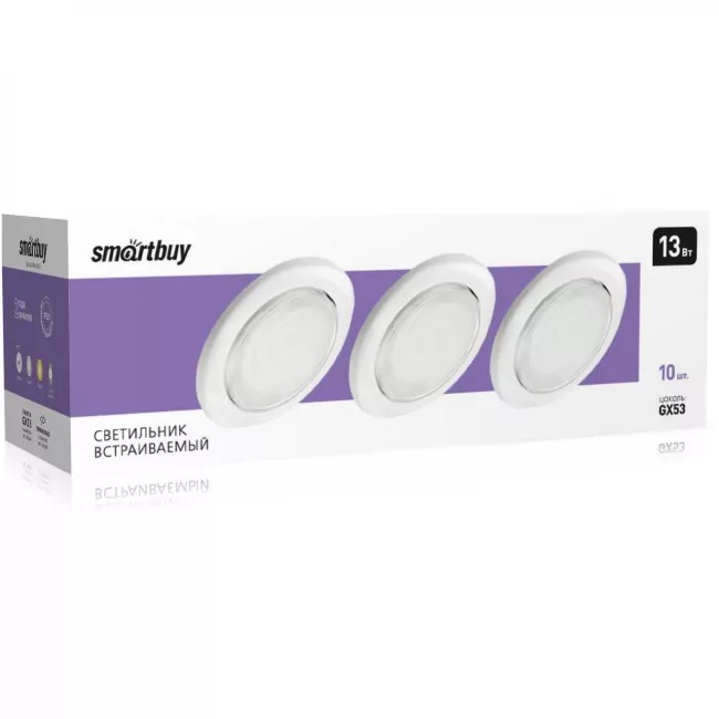 Светильник светодиодный под лампу GX53 металлический белый, 10шт в упак. Smartbuy в Комсомольск-на-Амуре