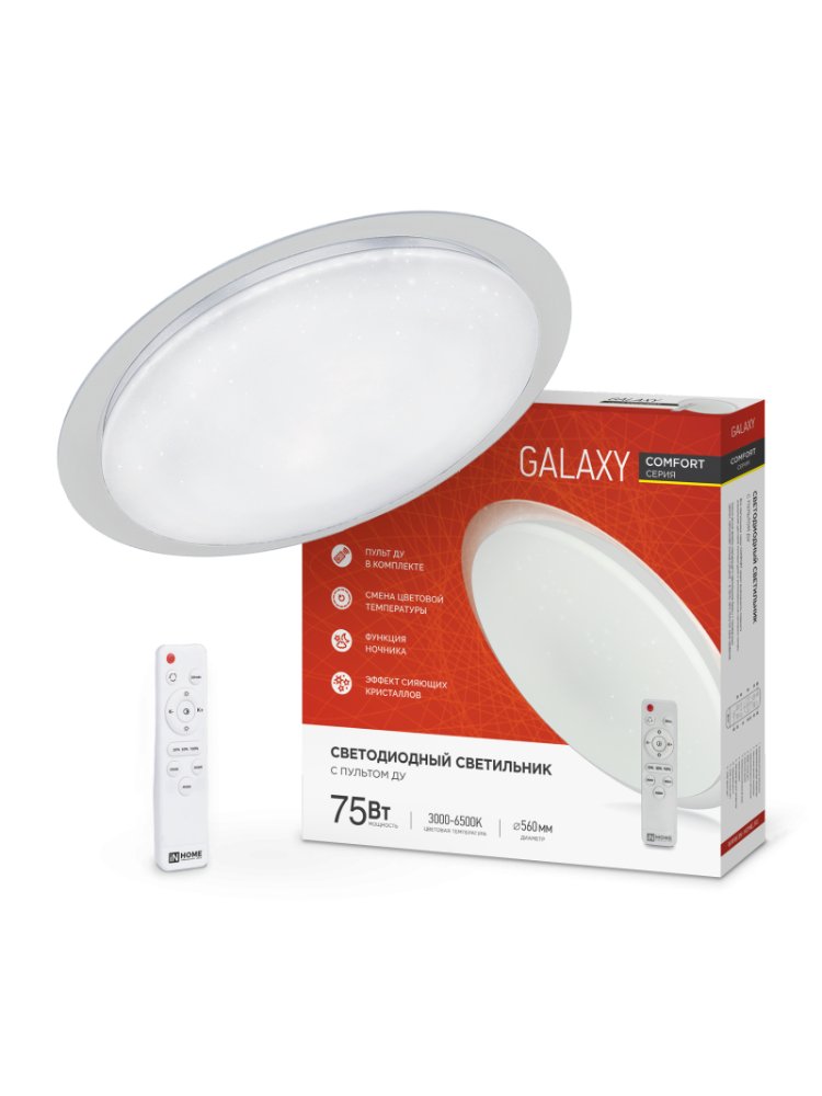 Светильник светодиодный с пультом COMFORT GALAXY 75Вт 230В 3000-6500K 6000Лм 560x55мм IN HOME в Комсомольск-на-Амуре