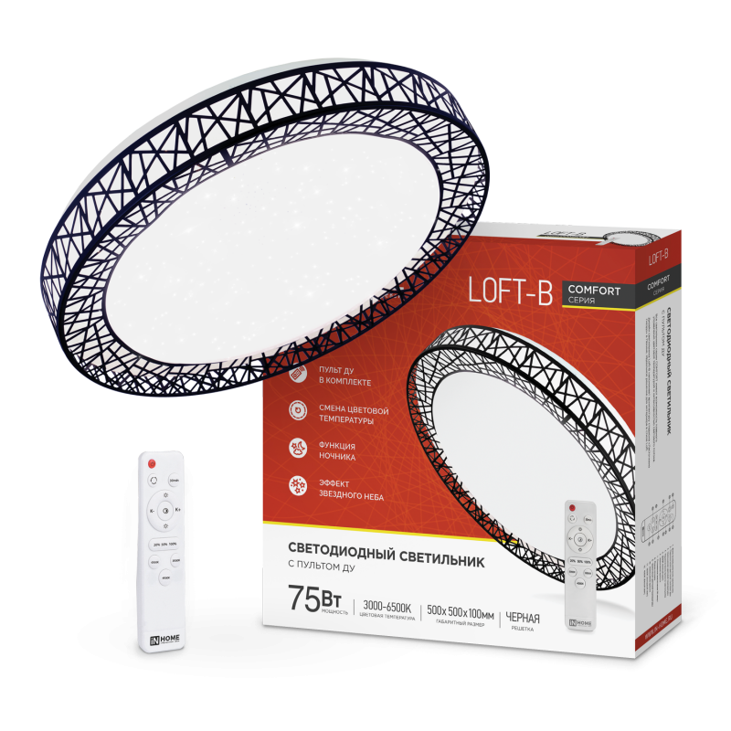 Светильник светодиодный с пультом COMFORT Loft-B 75Вт 230В 3000-6500K 6000Лм 500x100мм IN HOME
