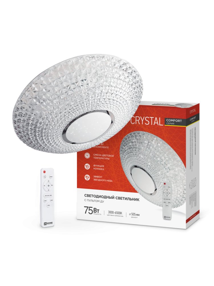 Эффективное решение для основного и декоративного освещения в жилых и коммерческих помещениях. Светильник оснащён мощными светодиодами (75Вт), создавая яркость до 6000 Лм и равномерный свет без мерцания. Диапазон цветовой температуры от 3000K до 6500K позволяет легко настроить атмосферу под разные задачи через пульт управления — от тёплого уютного до холодного рабочего освещения. Удобное переключение режимов и плавная регулировка яркости обеспечат комфорт в спальне, гостиной, офисе, кабинете или детской.