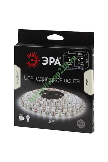 Лента светодиодная 14Вт/м 12В IP65 белый 6500K LS5050-14,4-60-12-6500K-IP65 ЭРА (уп.5м.)