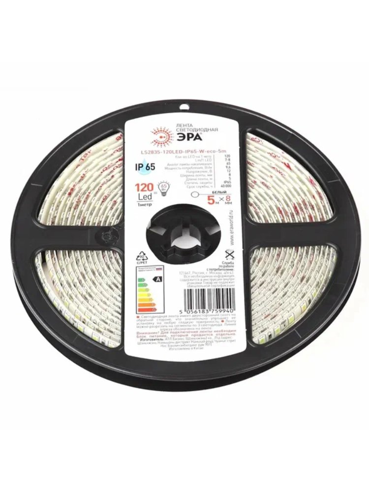 Лента светодиодная 9,6Вт/м 12В IP65 белый 6500К LS2835-9,6-120-12-6500K-IP65 ЭРА (уп.5м.)