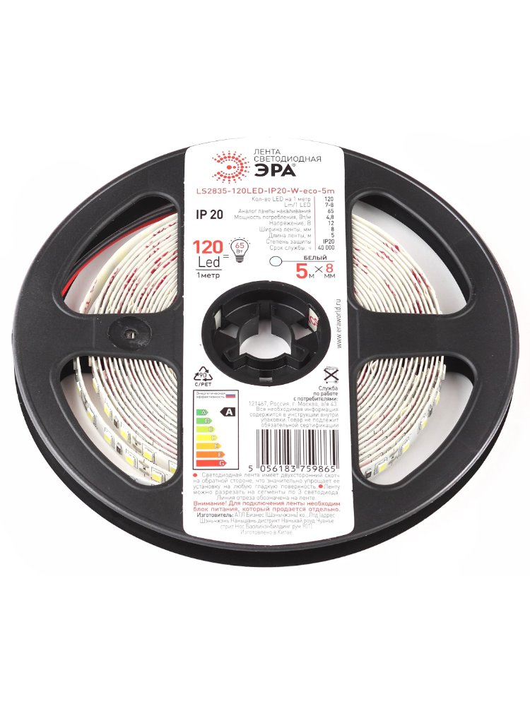 Лента светодиодная LS2835-9,6-120-12-6500K-IP20 ЭРА (упаковка 5 м)