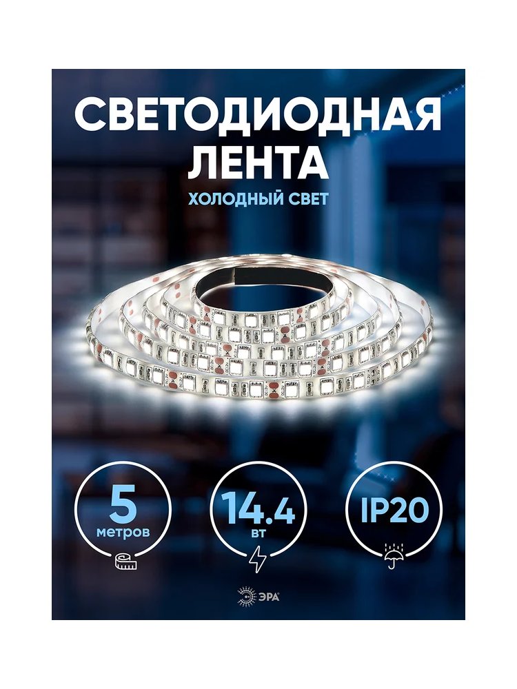 Яркое и эффективное решение для современного освещения! Светодиодная лента идеально подходит для внутренней декоративной подсветки жилых и коммерческих помещений, витрин, мебели, потолочных ниш и рабочих зон. Благодаря мощности 14 Вт/м и холодному белому свечению 6500K, вы сможете создать чистое и максимально освещённое пространство.