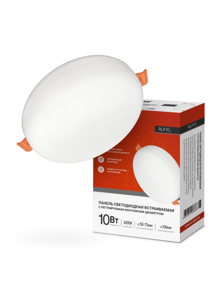 Панель светодиодная безрамочная RLP-FL 10Вт 230В 4000К 900Лм d100 встраиваемая IP20 IN HOME в Комсомольск-на-Амуре