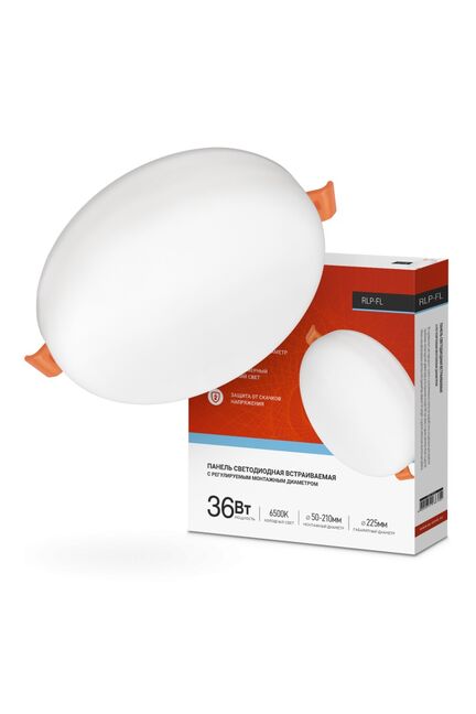 Встраиваемые светодиодные панели RLP-FL разработаны специально для решения проблемы несовпадения диаметров установочных отверстий при замене одних светильников на другие. Механизм регулировки монтажного диаметра – интересное инженерное изобретение, которое избавит от затрат на дополнительные монтажные работы, сэкономит время на подборе аналогов в заданных размерах. Установить такую панель не составит проблем. Небольшая высота корпуса позволит сэкономить потолочное пространство, модель подойдет для помещений с низкими потолками. Лаконичный дизайн светильника идеально впишется в любой интерьер. Алюминиевый корпус обеспечивает хороший теплоотвод и увеличивает срок службы светодиодов. Светодиодные панели RLP-FL можно использовать как для освещения помещений общественного пользования и коммерческой недвижимости, так и для бытового сектора. Безрамочная светодиодная панель 18Вт, 6500К, 1620 лм, d120мм для встраивания, энергоэффективное решение для яркого освещения, для сухих помещений.