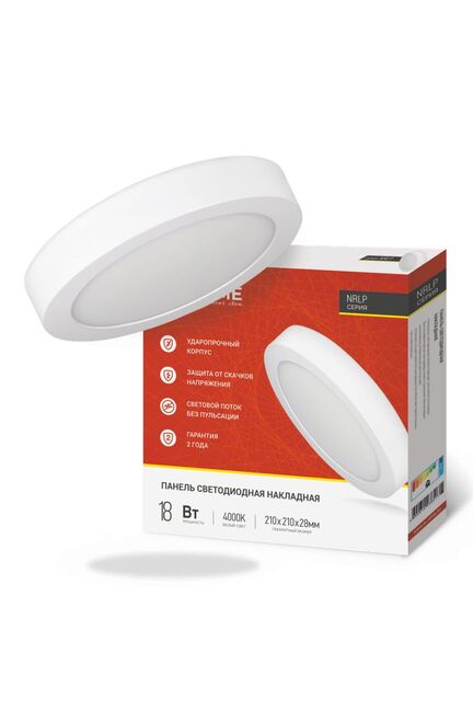 Накладная светодиодная панель 18Вт, 4000К, 1260Лм, диаметр 210мм. Приятный нейтральный свет, энергосбережение, идеальна для потолков и стен.