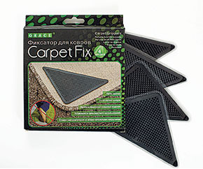 Фиксаторы предназначены для предотвращения скольжения ковров, ковровых дорожек и ковриков по полу. Надежно крепятся с обратной стороны ковровых изделий за счет липкой поверхности, не оставляя при этом следов. Могут использоваться многократно. Совместимы практически с любыми видами напольных покрытий (ламинат, паркетная доска, линолеум, керамическая плитка, кварцвинил, лакированная массивная доска, пробка).