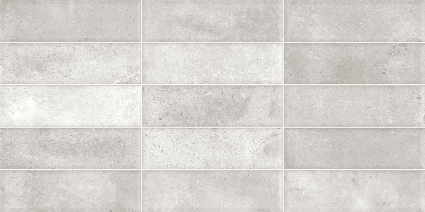 Серая керамическая плитка 300×600 мм с фактурой кирпича, устойчивая к влаге и морозу, для отделки стен внутри и снаружи помещения.