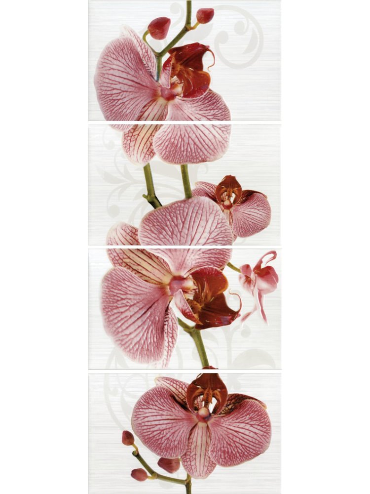 Преобразите интерьер с эксклюзивным панно с изысканными орхидеями — изюминкой вашей ванной или кухни. Крупноформатная декор-панель (размер 400×1000 мм, 4 плиты) легко монтируется, создавая эффект цельного художественного полотна с насыщенным цветом и стойким глянцевым покрытием.