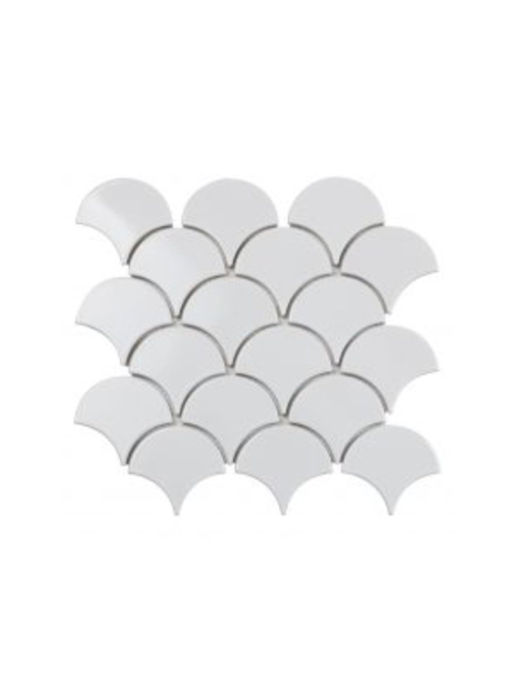 Стильная мозаика с формой «чешуя» мгновенно преобразит интерьер, создавая выразительный акцент на кухне, в ванной комнате или зоне SPA. Белоснежная поверхность поддерживает визуальную чистоту и легкость пространства, органично сочетаясь с современными и классическими стилями в отделке.
