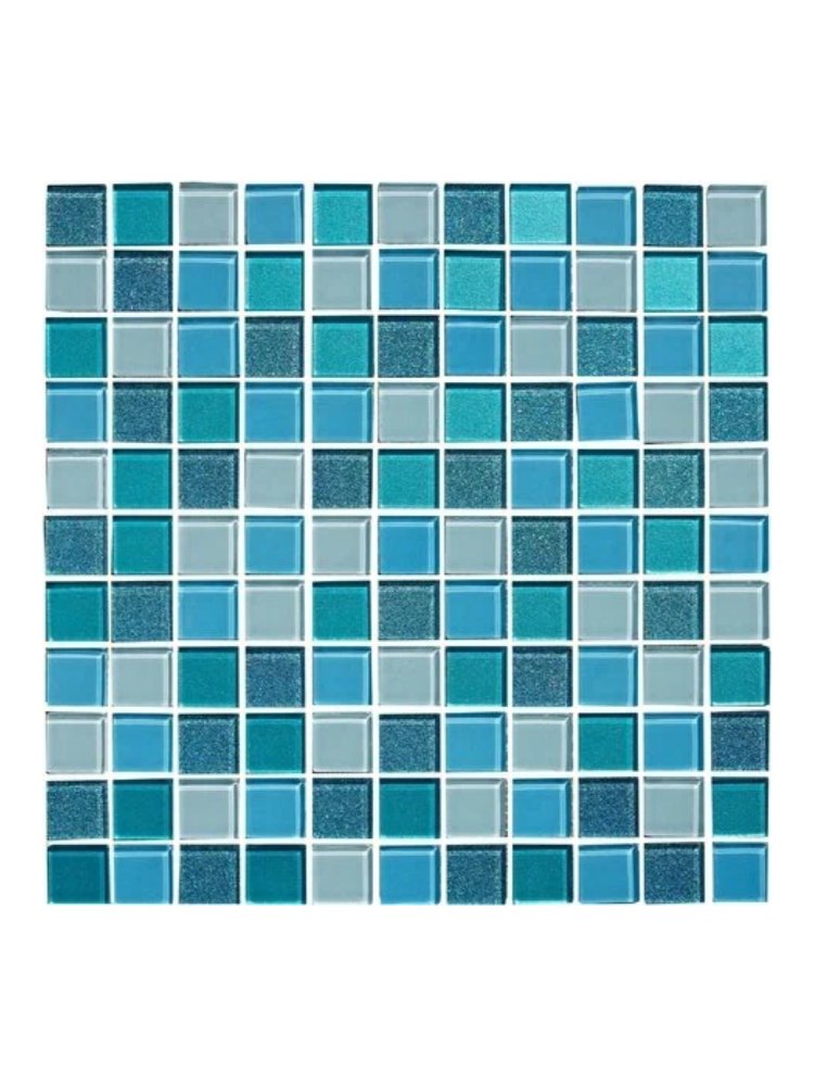 Тип поверхности: Глянцевая Стеклянная влагостойкая мозаика, размер листа 295×295 мм, чип 25×25 мм, подходит для ванных, бассейнов и кухонь, устойчива к химии и выцветанию.