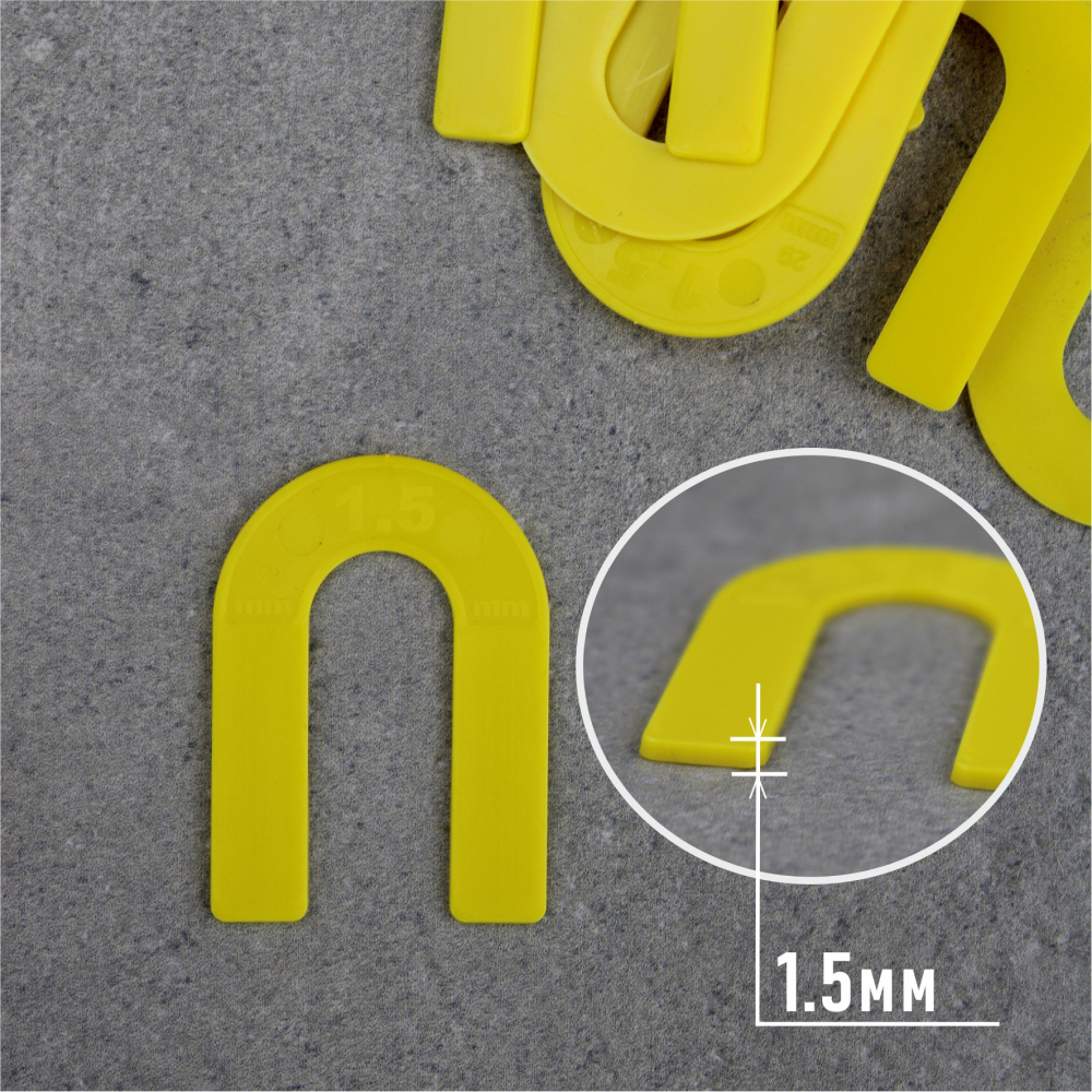 Подкова СВП для формирования межплиточного шва. Для горизонтальной и вертикальной укладки плитки. Подходит для крупноформатного кафеля. Многоразовые подковы 1,5 мм для точного шва, 50 шт., удобны для укладки плитки и керамогранита, обеспечивают плотность и равномерность монтажа.