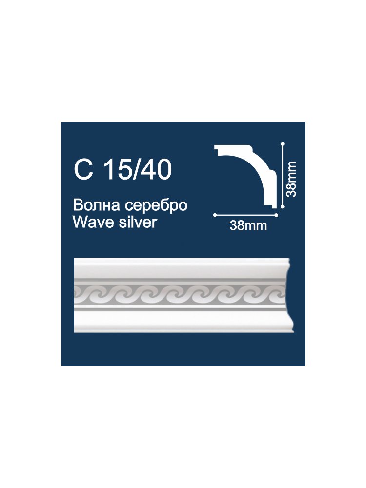 Плинтус потолочный C15/40 (2м/ 39х39мм) с печ. Волна/ Серебро (190)