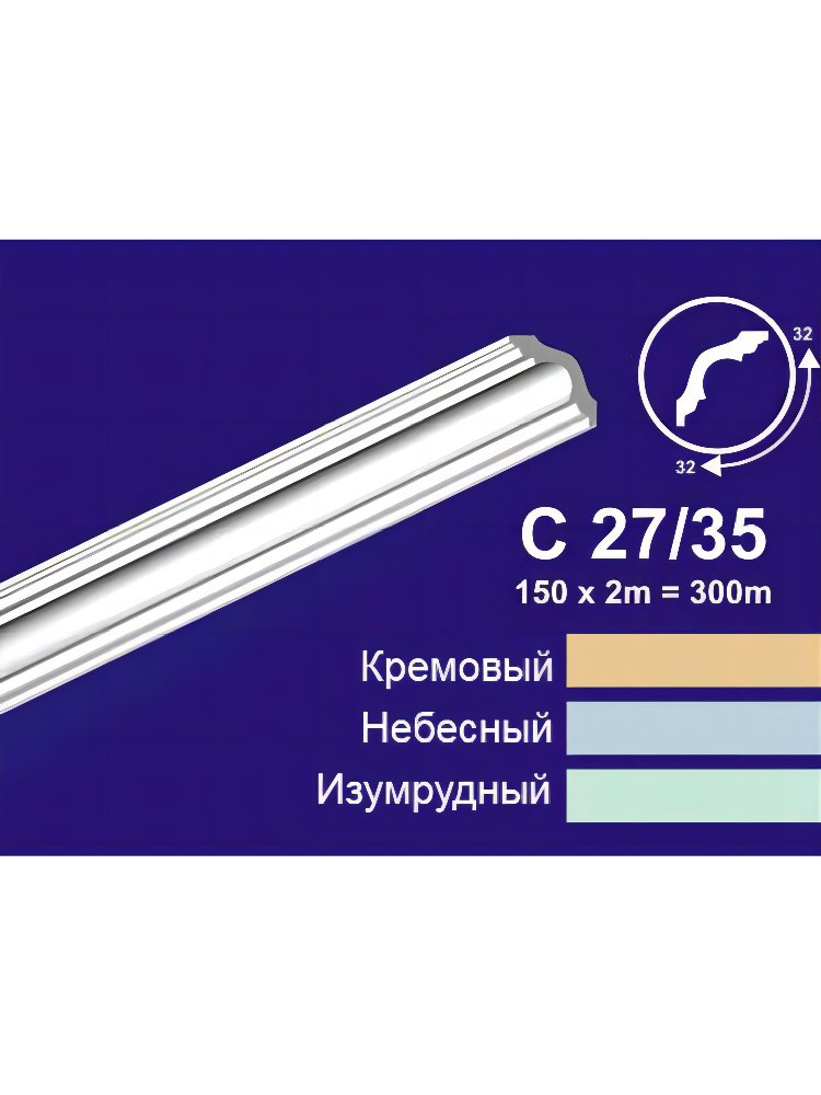 Потолочный плинтус 32×32×2000 мм белый: легкий, влагостойкий, легко монтируется, скрывает неровности, подходит для любых интерьеров.