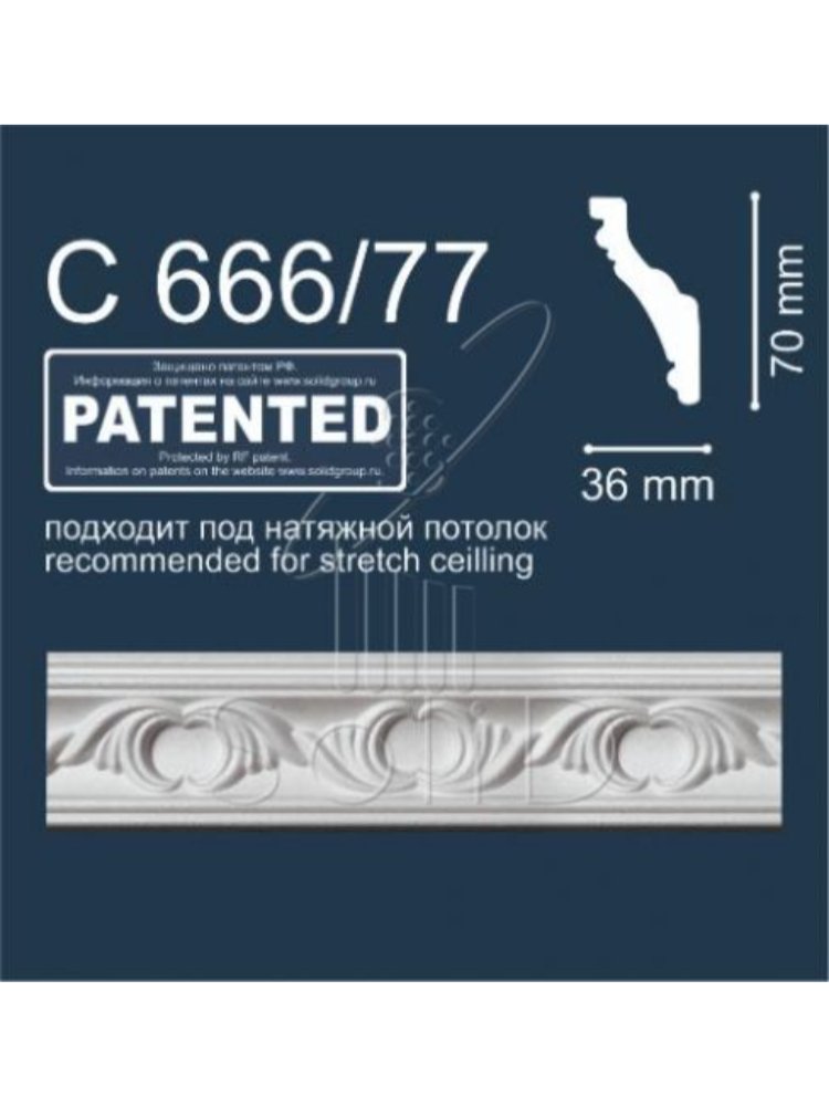 Плинтус потолочный С666/77 (2м/ 70x36мм) (40) Подходит под натяжной потолок в Комсомольск-на-Амуре