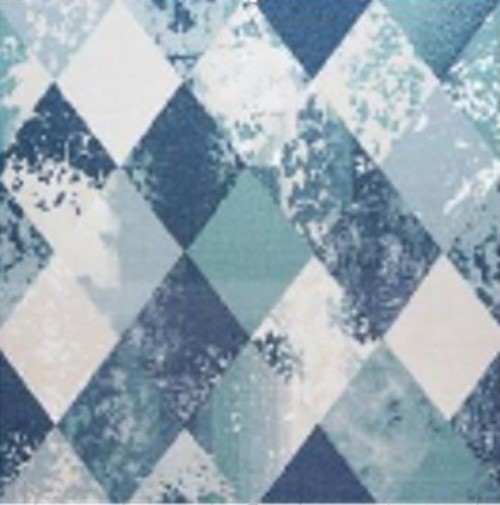Практичный ковролин 4 м с прочным ворсом, износостойкий, легко очищается, подходит для дома и офиса, стильный дизайн с синими ромбами.