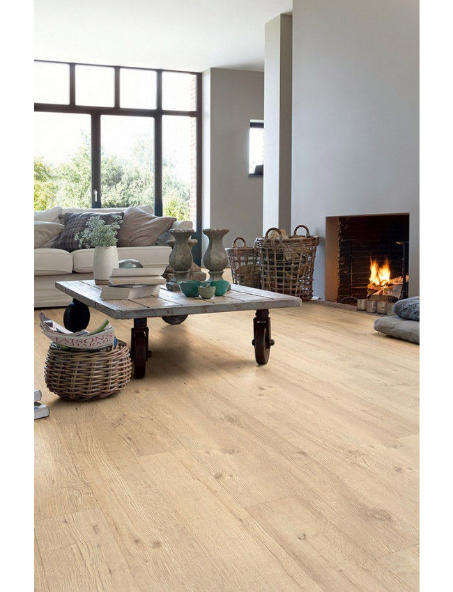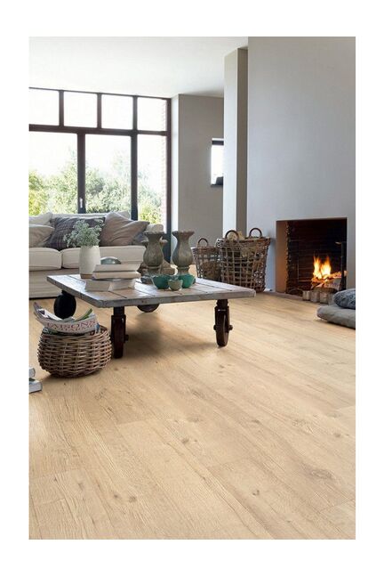 Ламинат 32 класса с фаской, влагостойкий, цвет натуральный дуб — идеален для дома и офиса, устойчив к истиранию и прост в уходе.