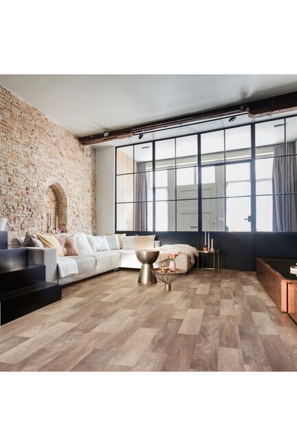 Имитирует деревянный пол с планками разной длины и оттенков, со следами поперечных запилов. Красивая и гармоничная поверхность этого пола с богатыми тональными вариациями придаст современный вид вашему дому. Идеален для квартиры и офиса: износостойкий, влагозащищённый, устойчивый к повреждениям линолеум 2,8 мм с современным дизайном и лёгкой укладкой.