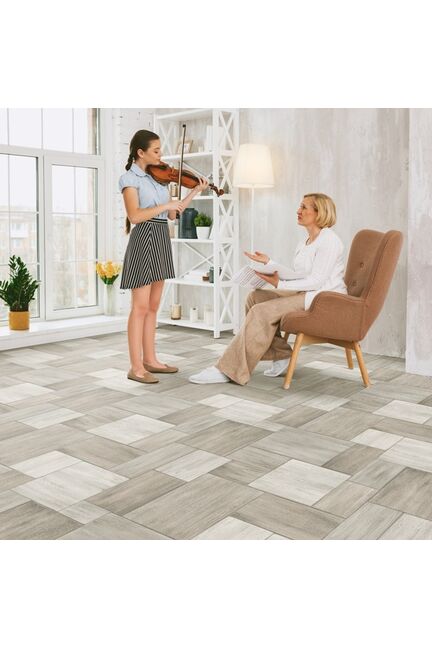 Абстрактный дизайн в формате плиток разного размера. Вдохновлён романтикой путешествий и полётов на самолётах, созерцанием прекрасных видов земного ландшафта, открывающихся взгляду в ясную погоду. Износостойкий, влагостойкий линолеум 4 мм, легко укладывается, подходит для дома и офиса, не выцветает и не боится механических нагрузок.
