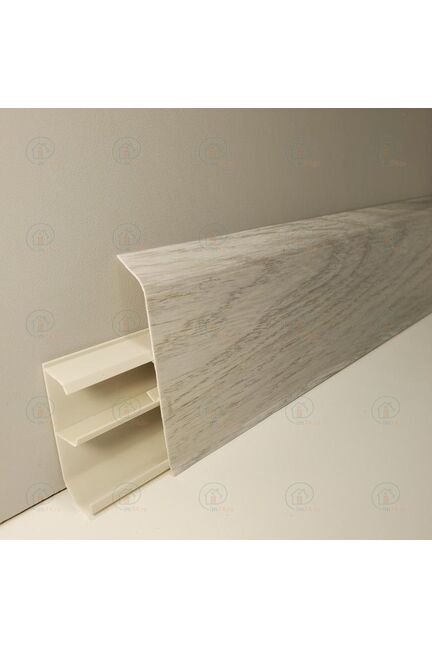 Утонченный и высокий профиль (80 мм) с острыми краями. Благодаря съёмной панели монтаж электрических проводов, покраска стен, оклеивание обоями возможны без демонтажа профилей. Конструкция позволяет монтировать и демонтировать плинтус без использования инструментов. Существует возможность размещения большого количества проводов, в том числе после монтажа. Специальная двухслойная технология: помимо слоя краски, дополнительно покрывается специальным лаком, благодаря чему его покрытие становится однородным, а это дополнительно защищает изделие от разного вида механических повреждений и вредного воздействия лучей УФ. Благодаря эластичному материалу, плинтус идеально прилегает даже к неровностям стен и полов.
