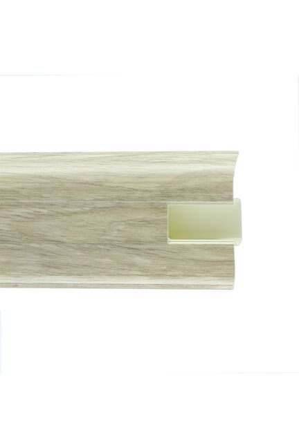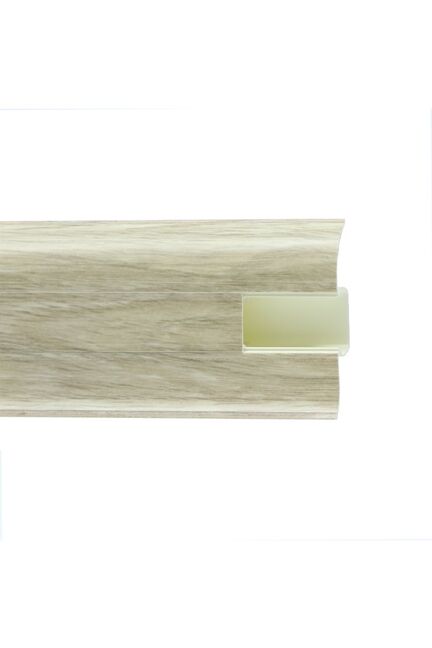 Влагостойкий плинтус 2,5 м, высота 58 мм, декор дуб рене, прочный материал, скрытое крепление, для жилых и коммерческих интерьеров.