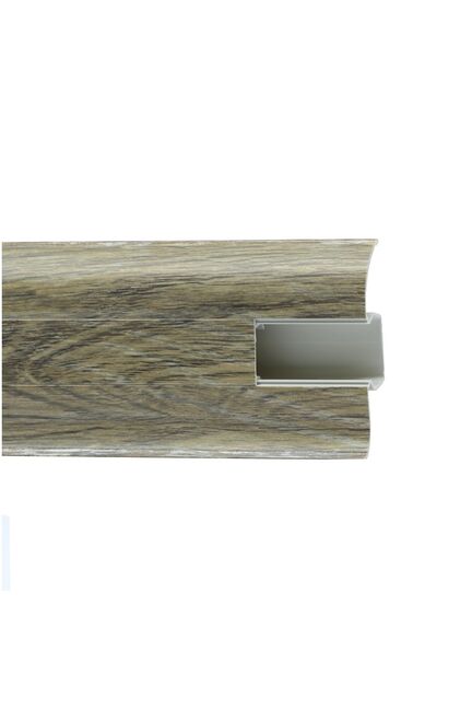 Износостойкий ПВХ-плинтус 58 мм с кабель-каналом: скрывает провода, устойчив к влаге и ударам, идеально сочетается с разными покрытиями.