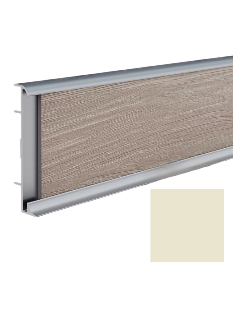 Идеальное решение для современной отделки — алюминиевый плинтус 60 мм в цвете RAL 1013 муар прекрасно комбинируется с коммерческими напольными покрытиями, обеспечивая прочное и аккуратное примыкание настенной и напольной поверхностей в общественных и коммерческих помещениях: офисах, магазинах, гостиницах, образовательных и медицинских учреждениях.