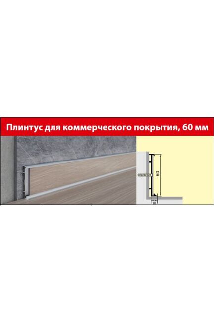 Плинтус алюминиевый для коммерческого покрытия 60мм*2,5м в Комсомольск-на-Амуре