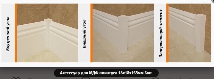 Соединительный элемент к плинтусу МДФ. Предназначен для избежания неровных косых срезов при монтаже плинтуса МДФ. Прочный соединитель для МДФ плинтуса 18×18 мм, фиксирует стыки, обеспечивает аккуратную отделку, быстро и просто монтируется, в упаковке 6 штук.