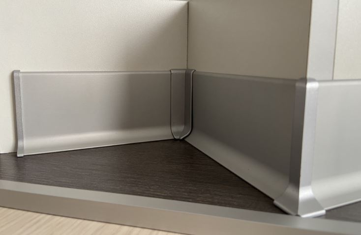 Алюминиевый плинтус отлично подходит для монтажа во влажных помещениях, санузлах и на кухне. Особенно гармонично алюминиевые плинтусы смотрятся в интерьере, в котором уже присутствуют элементы из шлифованной или полированной стали. В жилых комнатах чаще всего устанавливают алюминиевые плинтусы в рамках стилевого решения Premium, Hi-Tech, Модерн или Минимализм. Алюминиевый плинтус может комбинироваться с любыми напольными покрытиями. Преимуществом такого плинтуса является легкость монтажа и долговечность покрытия. Структура плинтуса позволяет изгибать его при установке на закругленных участках стыков. Алюминиевый плинтус хорошо моется, приятен взгляду, долговечен, практичен, не пропускает неприятный запах.