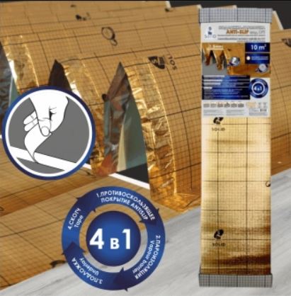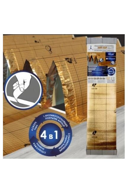 Обладает высокой устойчивостью к нагрузкам и оснащена специальным антискользящим слоем ANTI-SLIP, защищающим замки напольного винилового покрытия и препятствующим скольжению панелей напольного покрытия. Не требует применения дополнительной уплотнительной ленты, поскольку интегрированный скотч и нахлест пленки обеспечивают герметичный шов между полотнами. Равномерно распределяет нагрев по поверхности при использовании систем теплого инфракрасного пола, поскольку имеет тонкий металлоподобный отражающий верхний слой, что обеспечивает снижение энергопотерь благодаря низкой теплопропускаемости. Нагревательный элемент легко укладывается на отражающее покрытие. Подложка обладает повышенной пароизоляцией, препятствует выходу влаги из основания. Подложка имеет антибактерицидные и противогрибковые свойства.